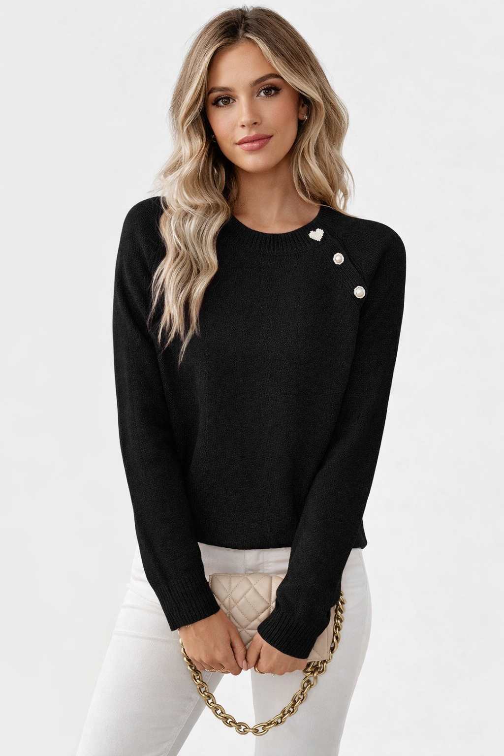 • Dekorativa knappar som ger en chic och distinkt detalj till din look.